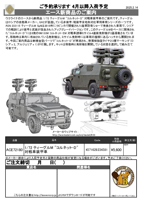 ACE 新商品 1/72 コルネット-D ご案内 2025.02.14
