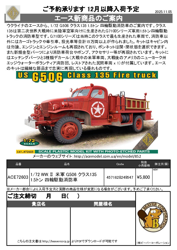 ACE 新商品 1/72 G506トラック ご案内 2025.11.05