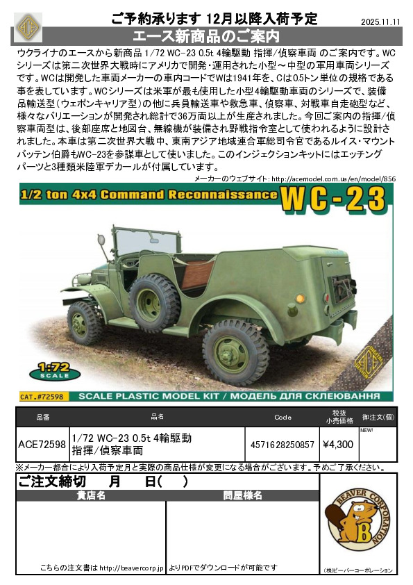 ACE 新商品 1/72 WC-23 0.5t ご案内 2025.11.11
