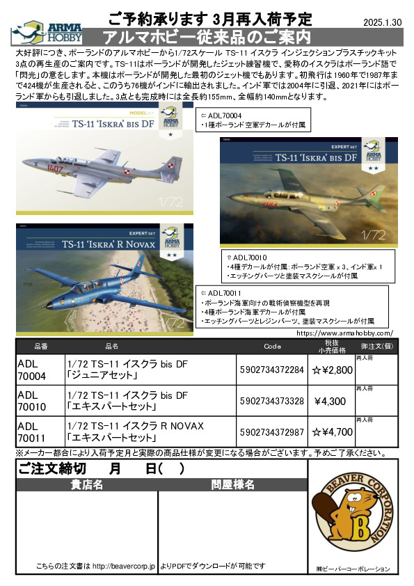 アルマホビー 再生産従来品 1/72 TS-11 ご案内 2025.01.30