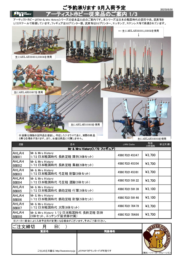 アーティストホビー 再入荷 戦国シリーズ 2025.08.08