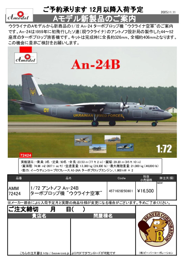 Aモデル 1/72 An-24B 新商品 20253.11.11