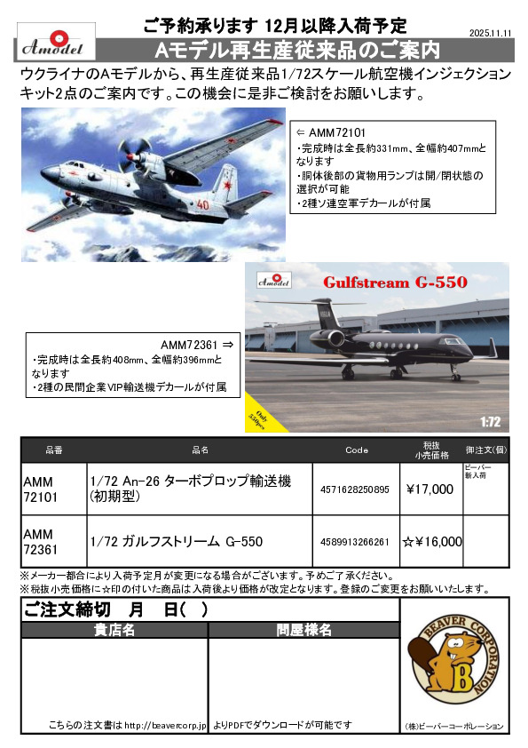 Aモデル 1/72 ブラン 再生産ご案内 2025.02.13