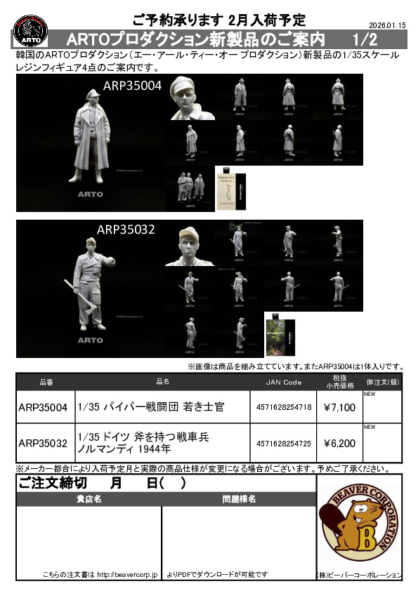 ARTO プロダクション 1/35thフィギュア 2点 新製品注文書 2023.05.26