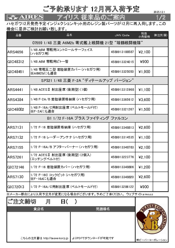 アイリス HSG12月用再入荷従来品ご案内 2025.12.01