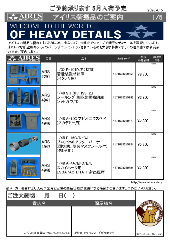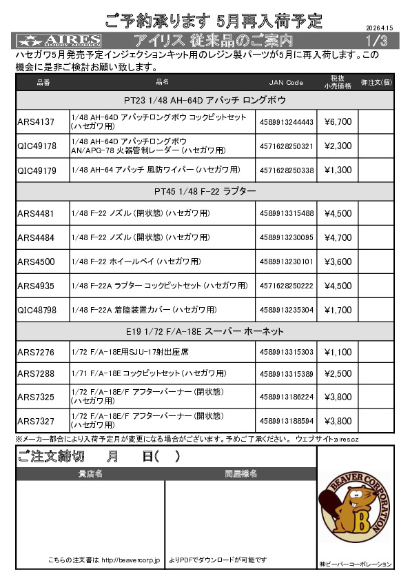 アイリス HSG 4月用再入荷従来品ご案内 2026.03.19