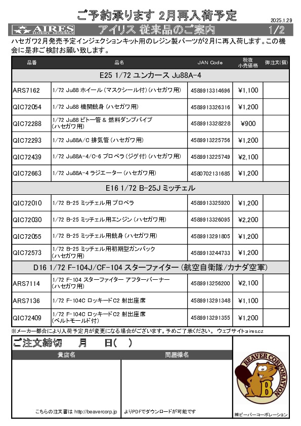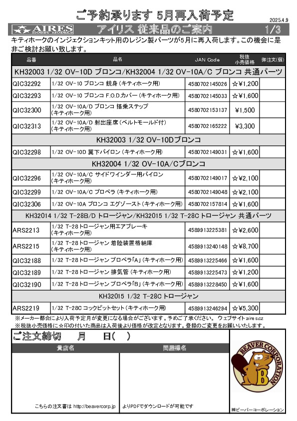 アイリス キティホークの5月用再入荷従来品ご案内2025.04.09