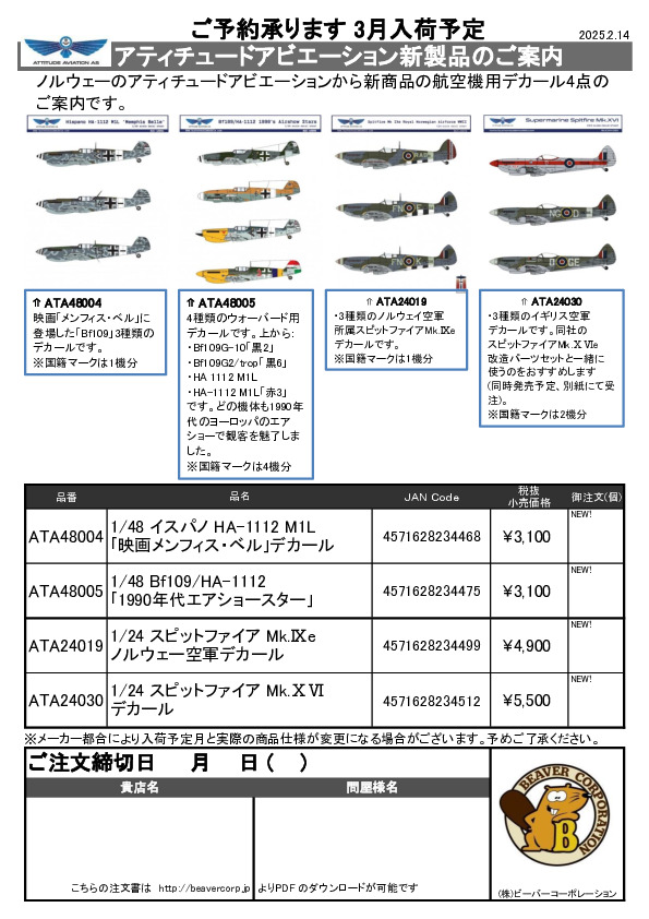 アティチュードアビエーション デカール 新製品ご案内 2025.02.14
