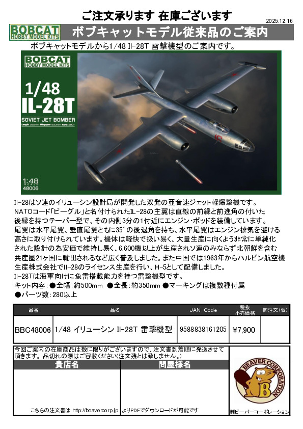 ボブキャット 1/48 IL-28T 在庫有従来品 205.12.16