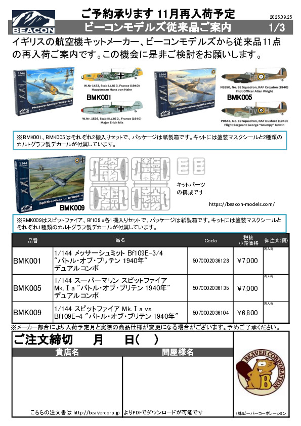 ビーコンモデルズ 従来品再入荷ご案内 2025.09.25
