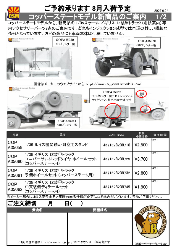コッパーステート 新商品 1/35 キット 2点 ご案内 2025.06.24