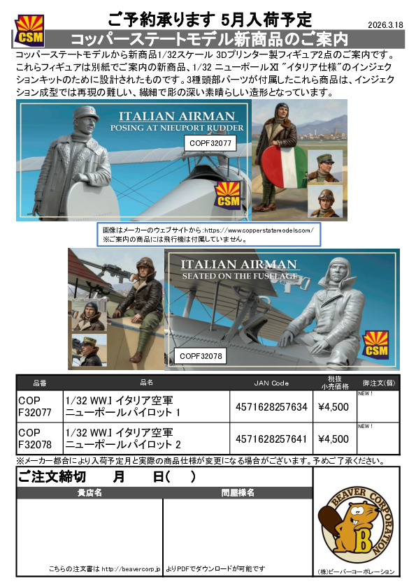 コッパーステート 新商品フィギュアご案内 2026.03.18
