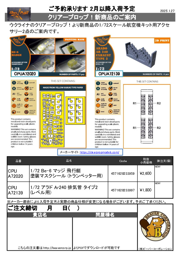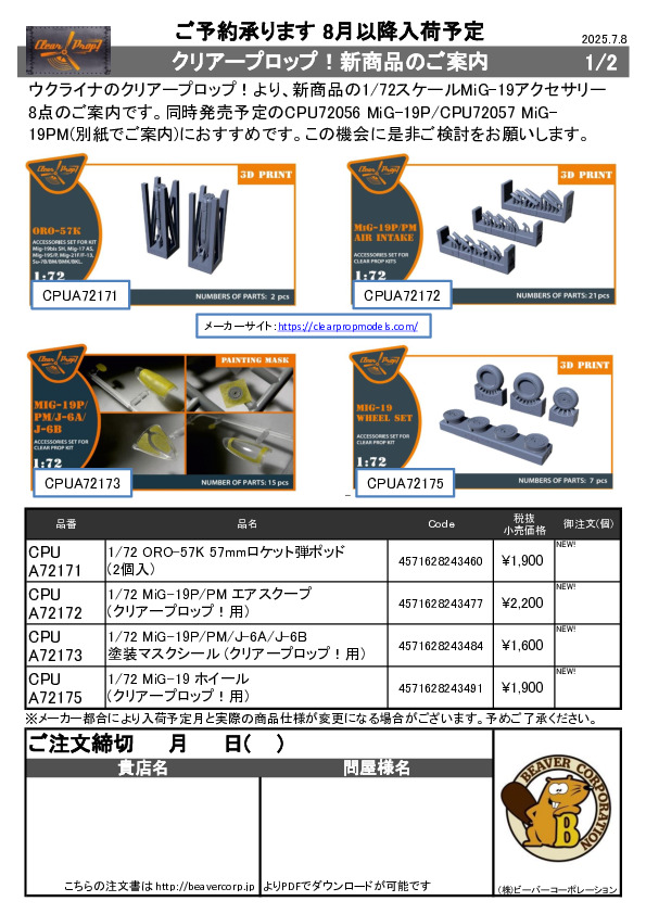 クリアープロップ 新商品 1/72 MiG-19アクセサリー ご案内 2025.07.08