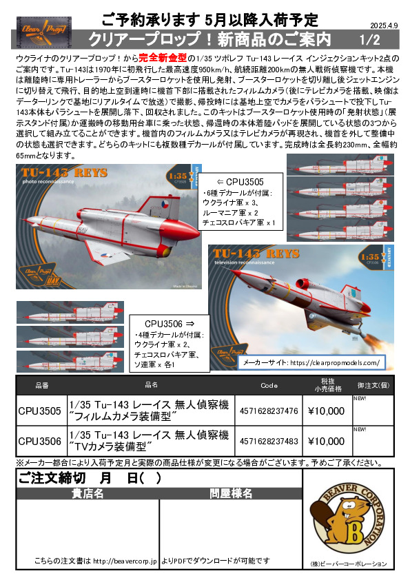 クリアープロップ 新商品 1/35 Tu143ご案内 2025.04.09