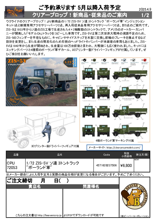 クリアープロップ 新商品 1/72nd ZiS-5vご案内 2025.04.09