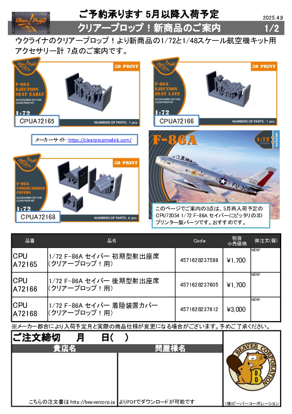 クリアープロップ 新商品 1/48th F-86Aご案内 2025.04.09