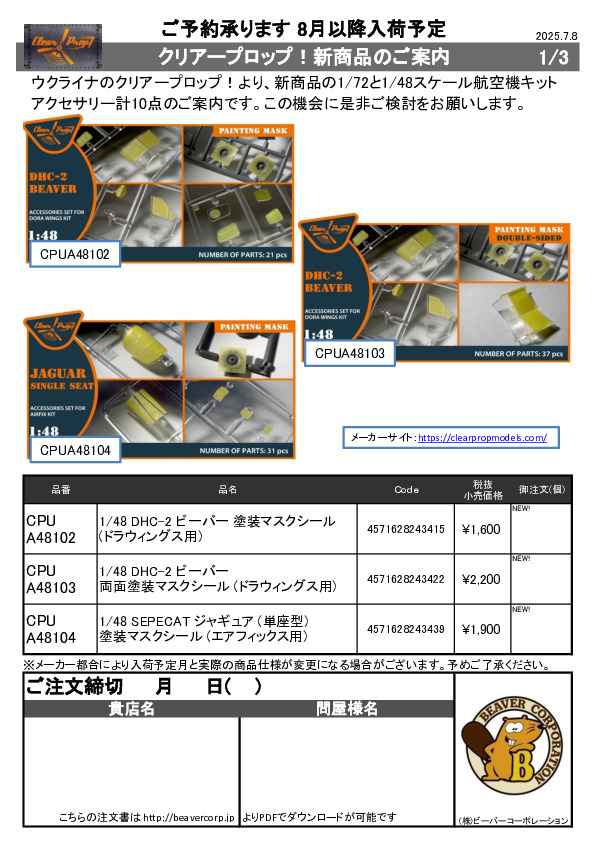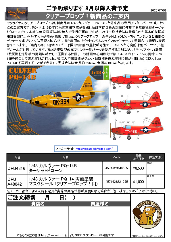 クリアープロップ 新商品 1/48th PQ-14Bご案内 2025.07.08
