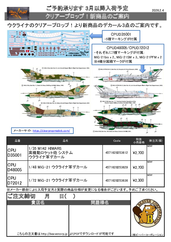 クリアープロップ 新商品デカールご案内 2026.02.04