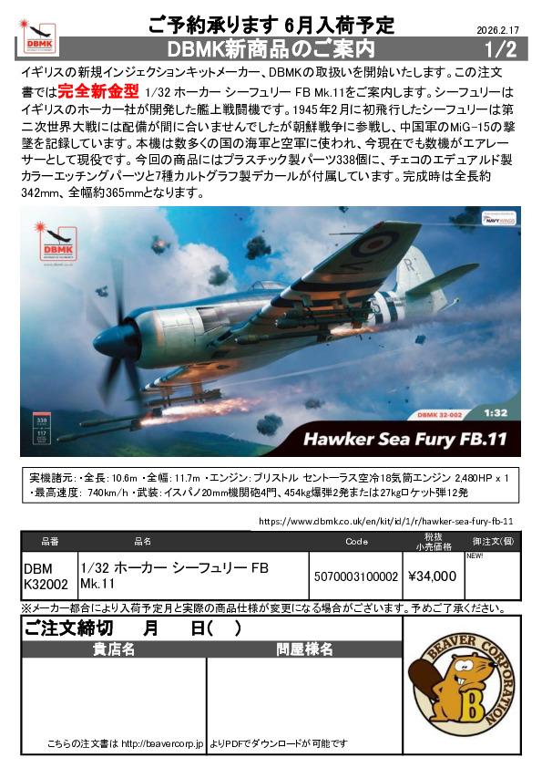 DBMK 新商品ご案内 1/32 ホーカー シーフュリー FB Mk.11 2026.02.17