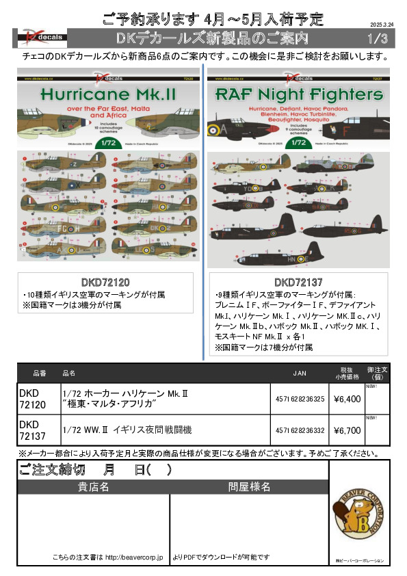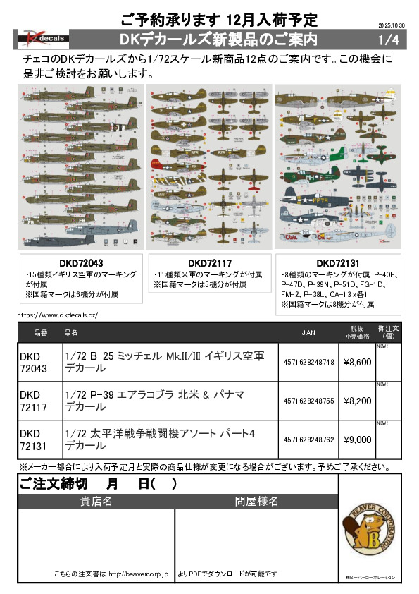 DKデカールズ 1/72nd 新製品 2025.10.30