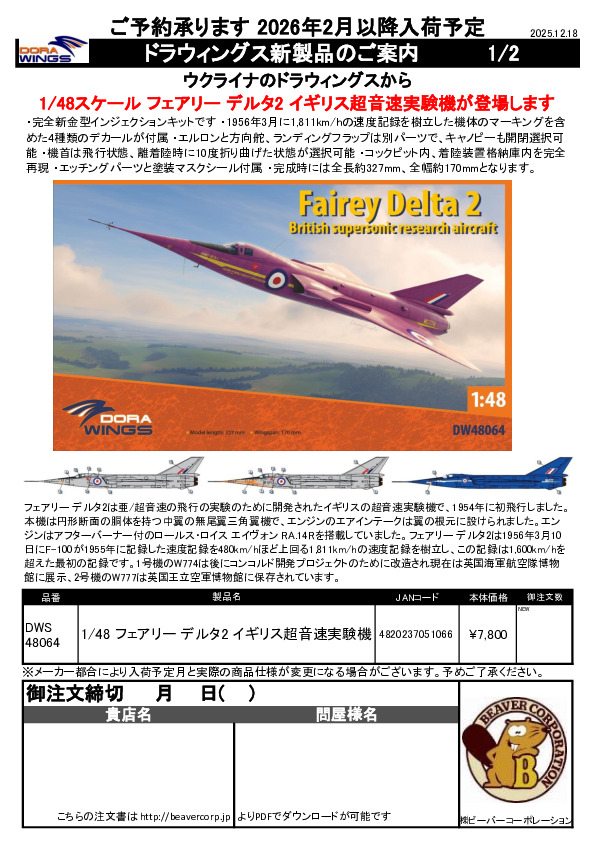 DORA WINGS 新製品ご案内 1/48 フェアリー デルタ2 2025.12.18