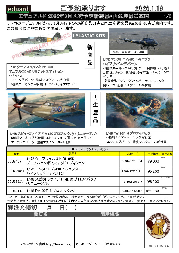エデュアルド 2026年1月入荷予定新製品ご案内 2025.11.18.