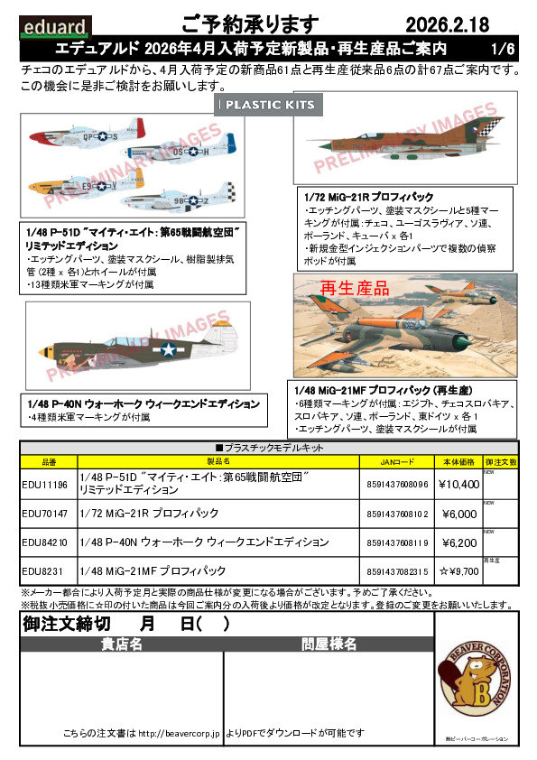 エデュアルド 2026年4月入荷予定新製品ご案内 2026.02.18