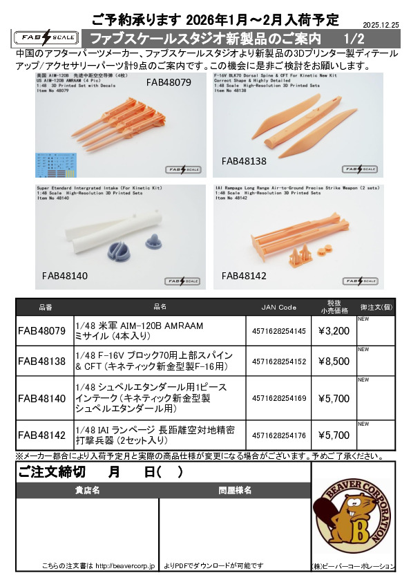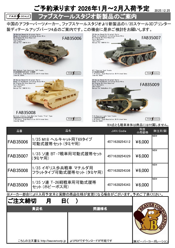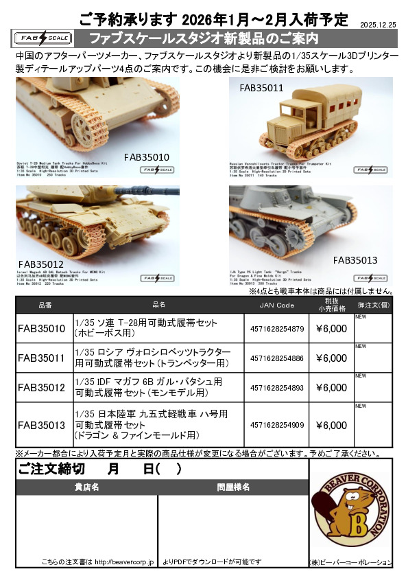 ファブスケールスタジオ 新製品 1/35 B 注文書 2025.12.25
