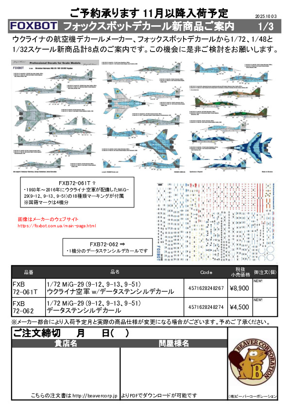 フォックスボットデカール 新商品ご案内 2025.10.03