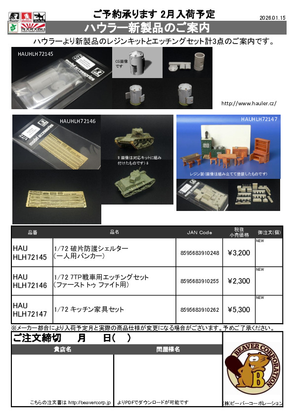 ハウラー 新製品注文書 2026.01.15