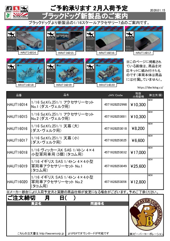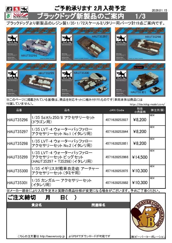 ブラックドッグ 新製品 1/35 ミリタリー注文書 2026.01.15