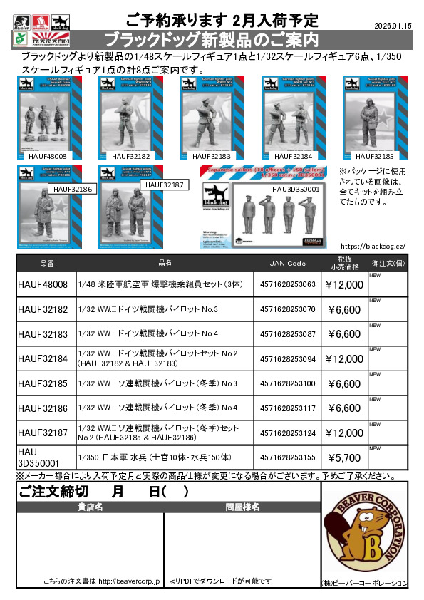 ブラックドッグ 新製品 1/48 1/32 1/350 フィギュア注文書 2026.01.15
