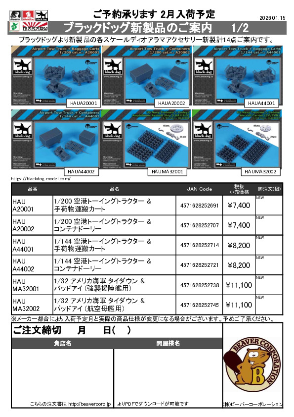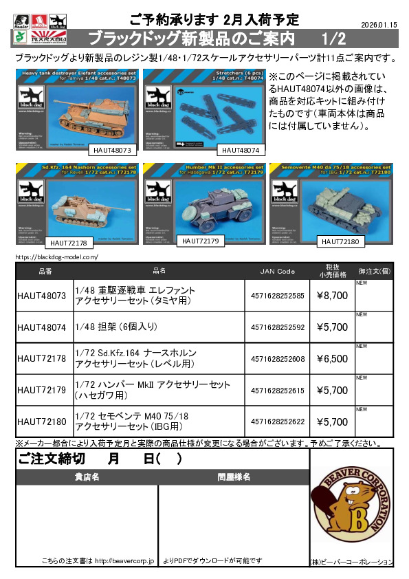 ブラックドッグ 新製品 1/48 1/72ミリタリー用注文書 2026.01.15