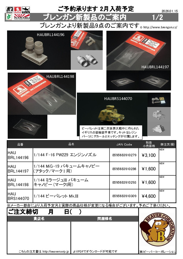 ブレンガン 新製品注文書 2026.01.15