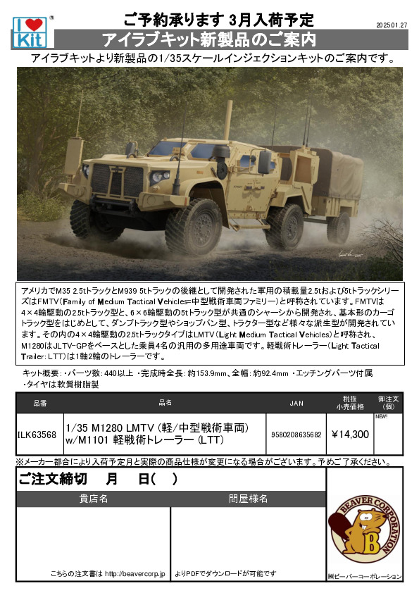 アイラブキット 新製品 1/35 M1280 LMTV w/M1101 LTT 注文書 2025.01.27