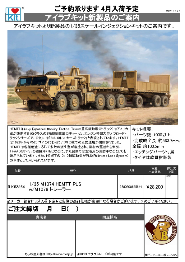 アイラブキット 新製品 1/35 M1278A1 注文書2025.05.27