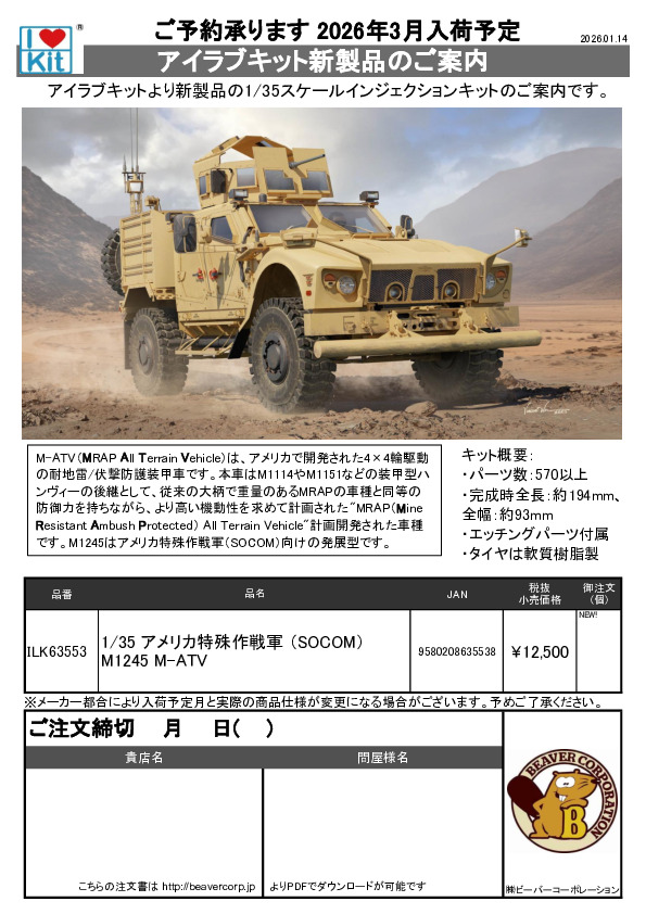 アイラブキット 新製品 1/35 SOCOM M1245 注文書 2026.01.14