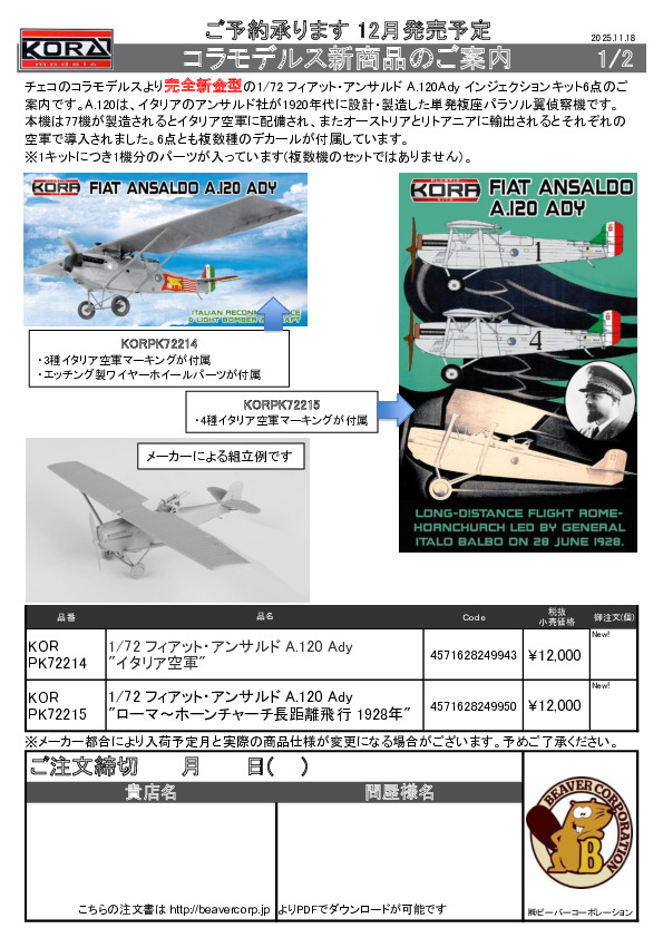 コラモデル 新商品 1/72 アンサルド ご案内 2025.11.18