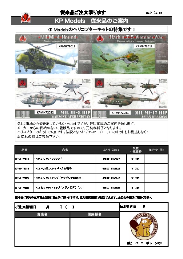 商品案内 KP モデル Helo Kits Special 2014/12/26