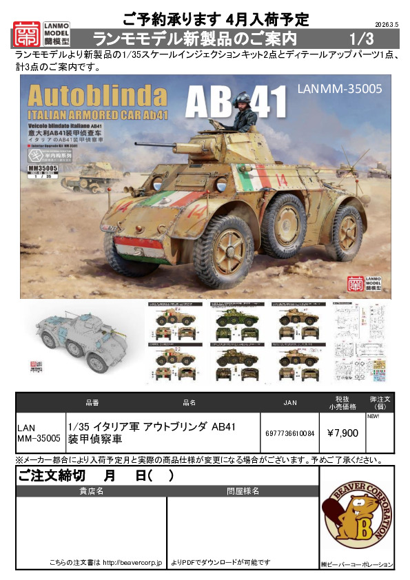 ランモモデル 新製品 1/35 BA64B 注文書 2024.12.24
