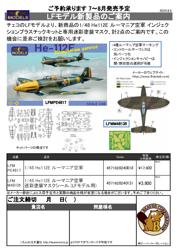 LFモデル 新商品 1/48 He112E ご案内 2025.06.05