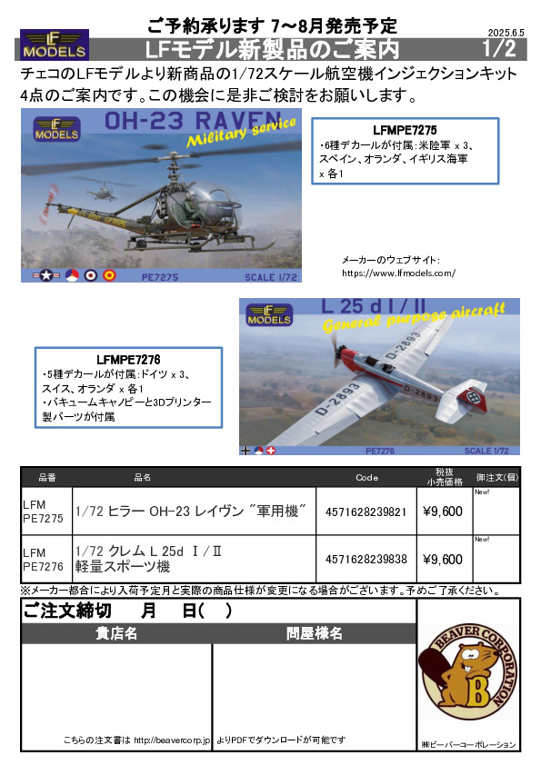 LFモデル 新商品 1/72nd キットご案内 2025.06.05