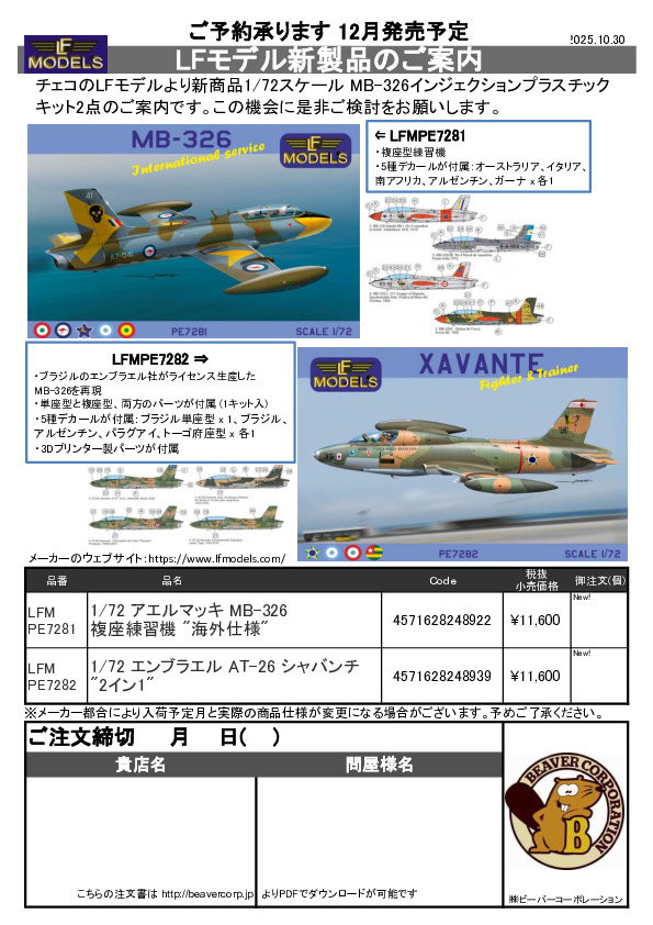 LFモデル 新商品 1/72 MB-326 ご案内 2025.06.05