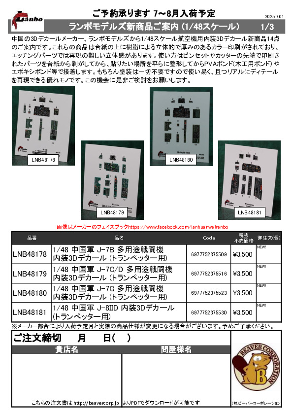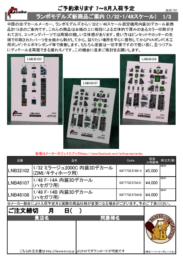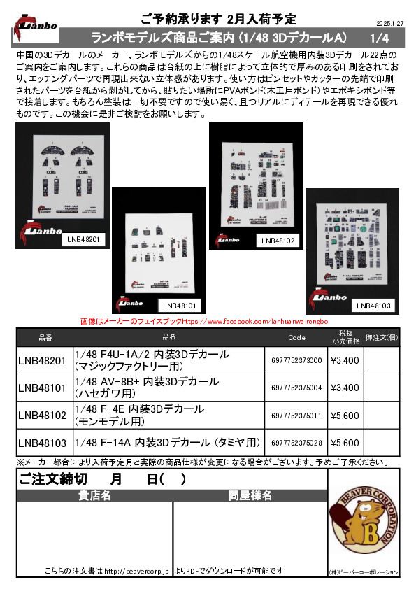ランボモデルズ 1/48 内装3DデカールB商品ご案内 2025.01.27