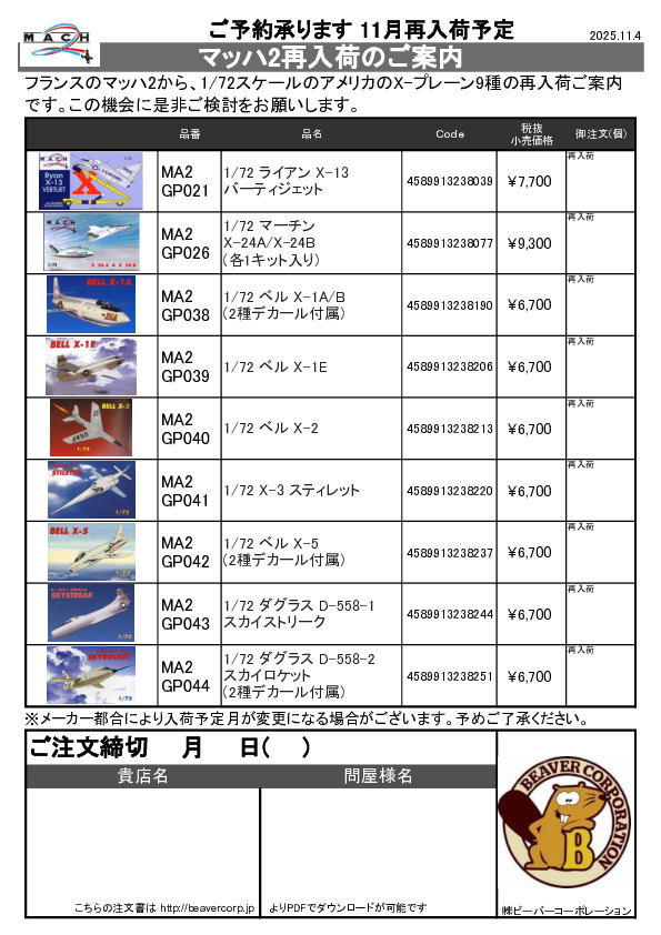 マッハ2 在庫有再入荷従来品Xプレーン ご案内 2025.11.04