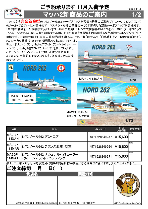 マッハ2 新商品 1/72 ノール 262 6点 ご案内 2025.11.04