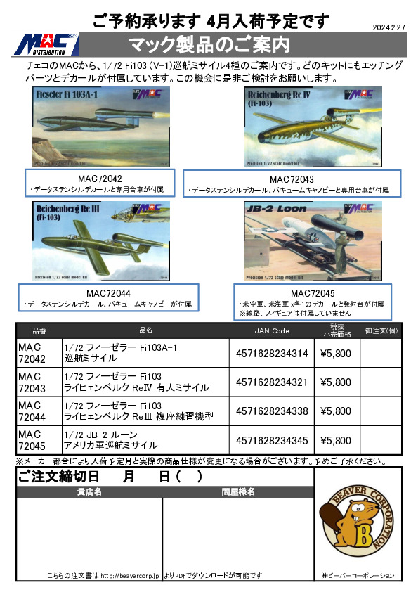 MAC 製品案内 1/72 Fi-103 2025.02.27
