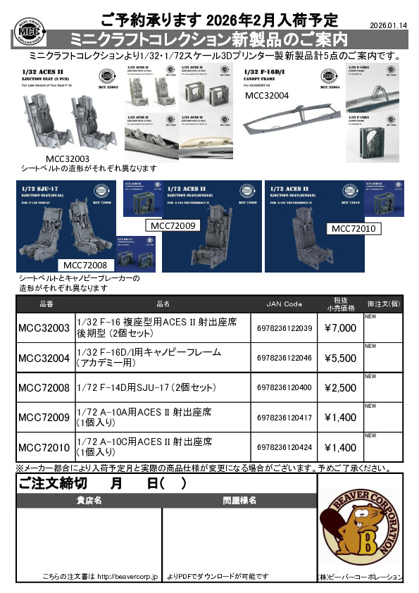 ミニクラフトコレクション 新製品 1/32 1/72 注文書 2026.01.14