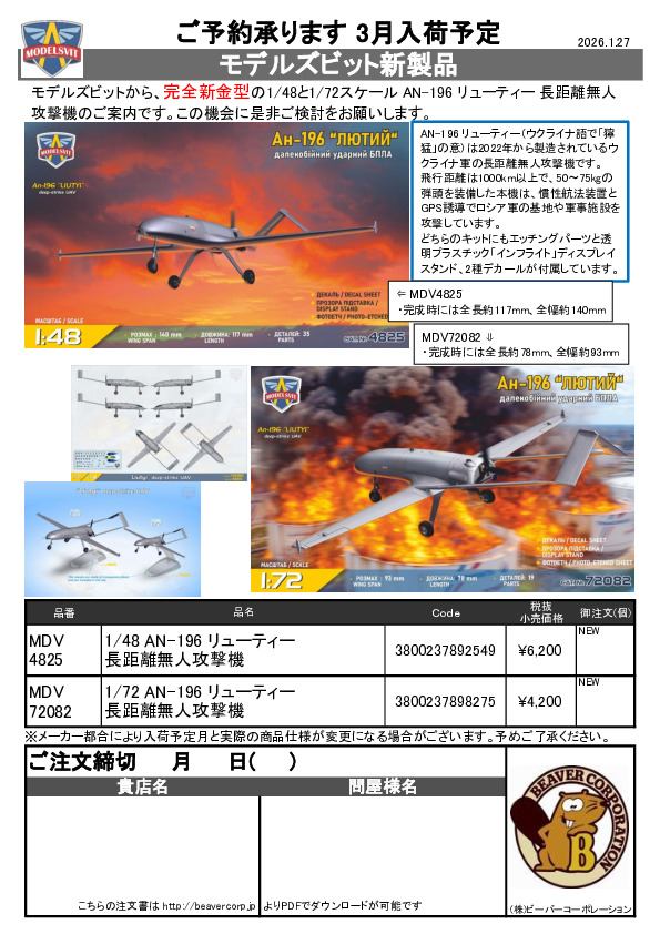 モデルズビット 新製品 1/48 & 1/72 AN-196のご案内 2026.01.27