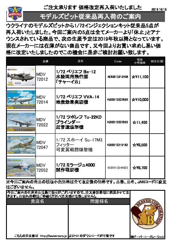 モデルズビット 新製品のご案内 2018.10.30